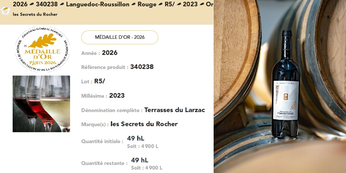 🥇 Médaille d’OR et Médaille de Bronze au Concours de Mâcon pour nos cuvées AOC Terrasses du Larzac 2022 🥉