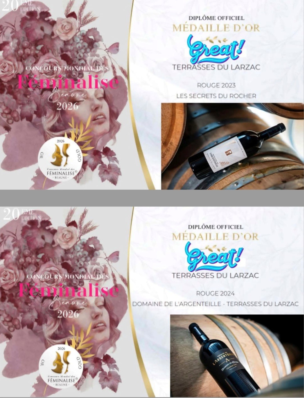 🥇Médailles d’or au Concours Mondial des Féminalise 2026 pour nos cuvées AOP Terrasses du Larzac 🥇