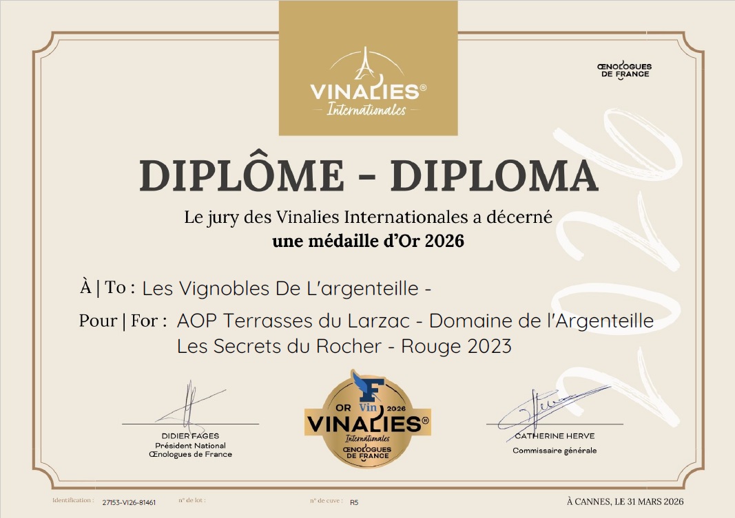 Notre cuvée LES SECRETS DU ROCHER 2023 en AOP Terrasses du Larzac a su conquérir le jury par son caractère, son élégance et son authenticité. Une belle reconnaissance pour le travail passionné mené chaque jour, de la vigne jusqu’au chai.